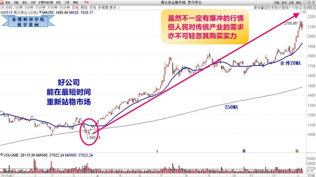 中國優勢之一就是擁有夠大的內需市場,人民的需求足以推動傳統產業的收益。也許粉絲們有關注到2020新經濟產業的高漲幅,但其實也不該忽視傳統產業的漲幅比例也相當可觀。以貴州茅台為例,去年上半年實際歸屬股東的淨利潤就高達226.02億元,較前年同期增長了13.29%,股價表現更是一路從960.10衝上如今的2000元關卡,所以別輕易忽視傳統產業因需求而創造的商機!