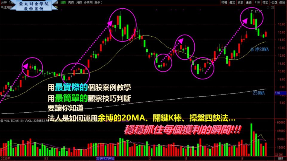 所以,為了能打鐵趁熱、趁勝追擊,想賺錢的你們,在看過2020年報體檢表,學習四率四升的法人選股秘笈後,肯定不能錯過再進一步學習法人圈的操作技術,余博用實際個股一檔檔教你怎麼做每個完美波段,讓你小賺大賺都掌握!!