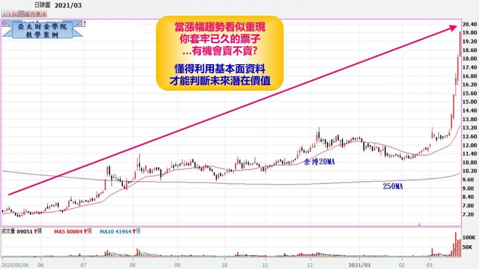 股價一路慘跌到個位數,被套牢多年的票子,當有一天開始往上衝…你會繼續抱著?還是找到解套的位階就趕快脫手?
