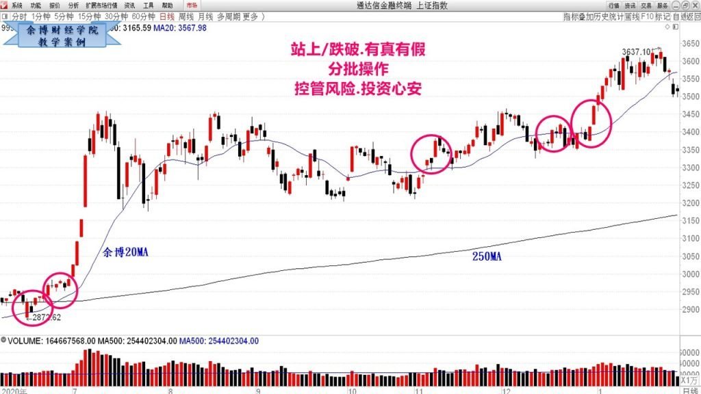 就以余博士最愛的20MA為例,大盤目前雖然跌破,但以全球股市來說,統計資料顯示中國股市有著超強的抗震力,資金紛紛向大型股靠攏,很多工業、技術、原物料、醫療保健等類股逐漸成為焦點,再細品十四五規劃的雙循環策略,不難想像新型態消費、科技創新、工業建設將會持續市場投資主流。衝著這股火紅趨勢,未來當股價再站回站穩余博20MA時,便是粉絲們把握布局的最佳時機囉!