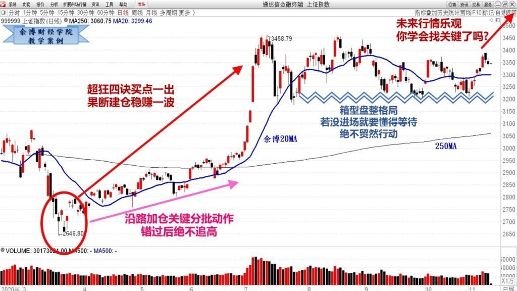 以上證指數為例,當初開始起漲的幾個重要關鍵位置,我在視頻文章裡一再提醒,而最後連金叉都過了,還問我要不要買?余博只能說:[此時我已經不會再追高]雖然後面還在持續上漲,但我視頻說過,現在只是在找減倉的位階而已。